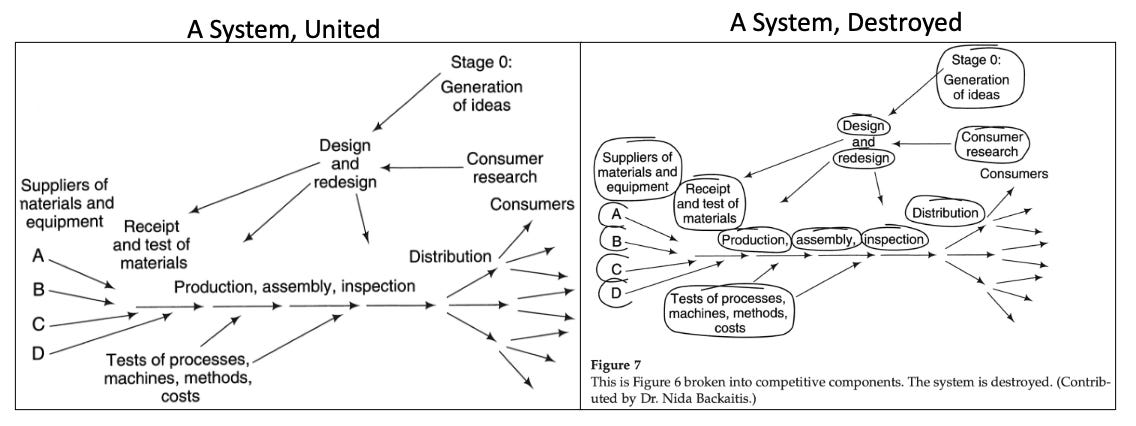 Key takeaway: Keep studying effects of adversarial competition, the Forces of Destruction, managing with a view to optimizing parts, and how this extends into the organization and to what effect.