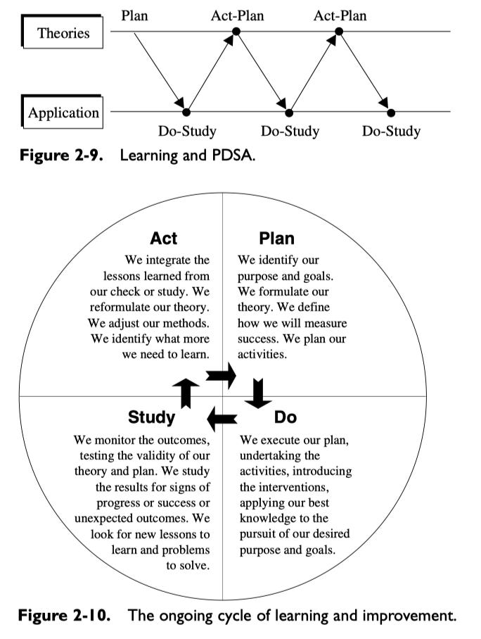 PDSAs can be broadly applied to organizational improvements and activities at any scale or time frame, eg. long-range annual planning, quarterly reviews, or even weekly staff meetings. Wherever there is a recurring process or cycle that we want to monitor and improve, a PDSA will help. The only caveat is to not try to do too much at once, or so little that nothing of use is learned — this is a skill that takes time to get right, as we are often overly-optimistic in our assessments of our targets for change and how to change them.