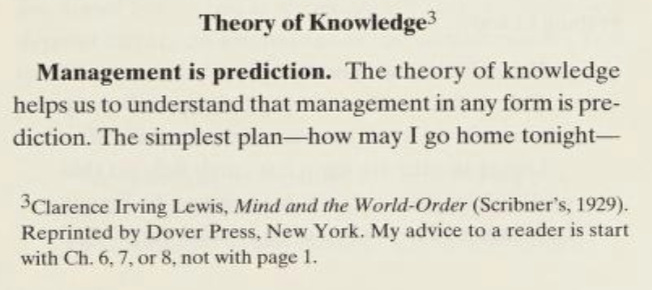 In The New Economics, Deming introduces the domain of Theory of Knowledge of the System of Profound Knowledge with a pithy sentence and a footnote: