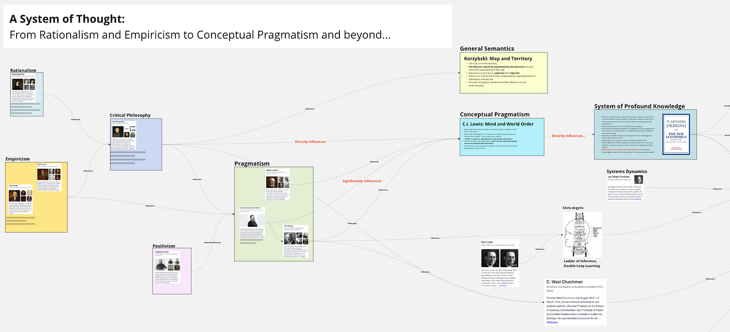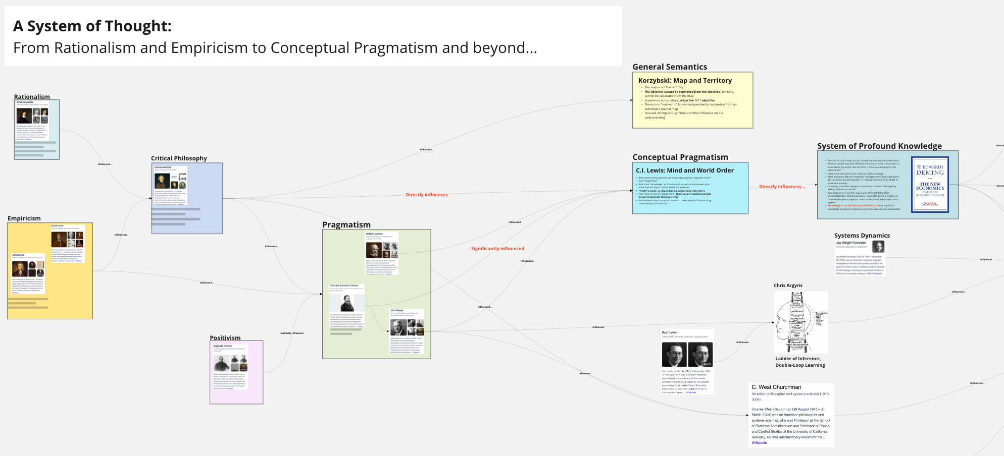 Anyhow, you can check out my map on Miro here - there’s also a timeline of systems thinkers that I created for a coaching customer a while ago that you can explore. It’s all a work-on-progress, and I’m adding and paring away for clarity as I go. My aim is to improve my own understanding and provide a tool for others to understand pedigrees of ideas they may hold and provoke their curiosity to learn more.